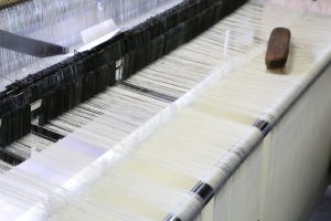 「立花テキスタイル研究所」のBag入荷致しました!「うね織バッグ」を紹介します。こちらは生成りです。ほかに鉄粉プリント、ワタ染め、柿渋鉄媒染、柿渋があります。持ち手のうね織は、帆布工場から出る残糸を手織りしています。本体生地色ごとにうね織の持ち手の配色も変わります。楽しい!!