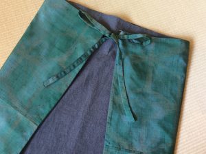 昔の職人が残した味わい深い着物生地と、現代の職人が作り出す上質な遠州織物を組み合わたスカートです。