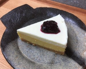 6月のスイーツは「チーズケーキ」!ブルーベリージャムを添えてどうぞ!!!