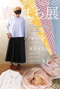 「HUIS.」の遠州織物シャツ・「うなぎの寝床」の久留米絣もんぺ・「yohaku」のつい手に取ってしまう服・「Maito Design Works」の草木染めニット、小物をメインに展示販売いたします。