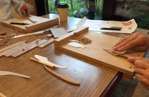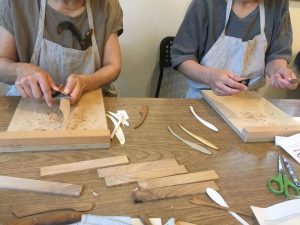 ワークショップ「くるみの木を使ってのカトラリー作り」作業中!小刀でかたちにしていきます〜