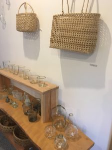 「草木染めてぬぐい」と「編みかご」を中心に、ガラス作品や季節に合わせた夏小物など〜