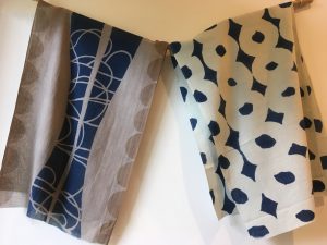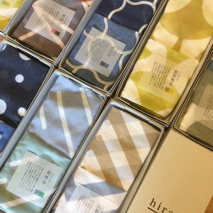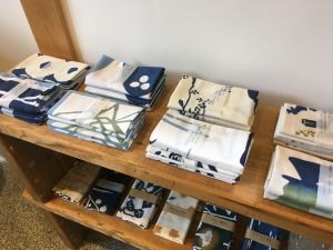 「てぬぐい」:長野の草木染めの「仕草」、浜松注染の「喜多屋商店さん」、大阪の「竹野染工」ロール捺染のリバーシブルてぬぐい、ガーゼストール、そのほか季節の柄のてぬぐいなど〜