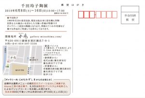 「千田玲子陶展」6月8日〜16日10時〜17時(最終日16時まで)となります!!