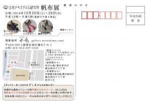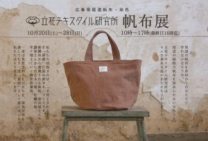 10月企画展「立花テキスタイル研究所帆布展」20日(土)〜28日(日)10時〜17時(最終日16時まで)