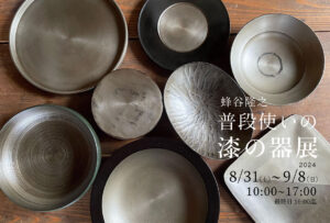 蜂谷隆之:神奈川県出身、輪島にて修行したのち、現在静岡河津町にて工房を構える漆芸家。コンセプトは「日常の食卓にこそシンプルで丈夫な美しい漆器を」