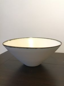 「器」。縁に施された釉薬のにじみがみられます。境にやさしいあおみどりの色が・・・
