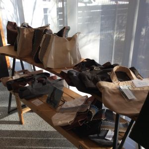 「立花テキスタイル研究所」は尾道帆布を使い自然染めでバケツバッグ、ボートバッグなどなど、カワイイペンケースもあります。