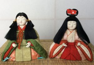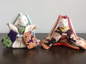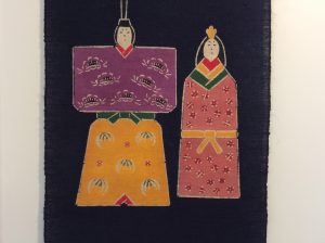 木版手染ぬいぐぐみの「おひな様」。木綿の型染め生地にもみがらを詰めてあります。