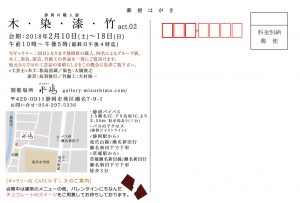 静岡の職人展「木・染・漆・竹」2月10日(土)〜18日(日)10時〜17時(最終日16時まで)となります。