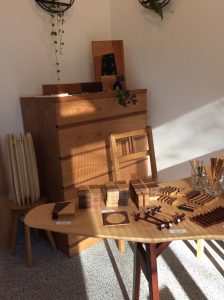 「静岡の職人展」木工房松島さんのコーナーです。木の色を大事に、デザインにもこだわっています。